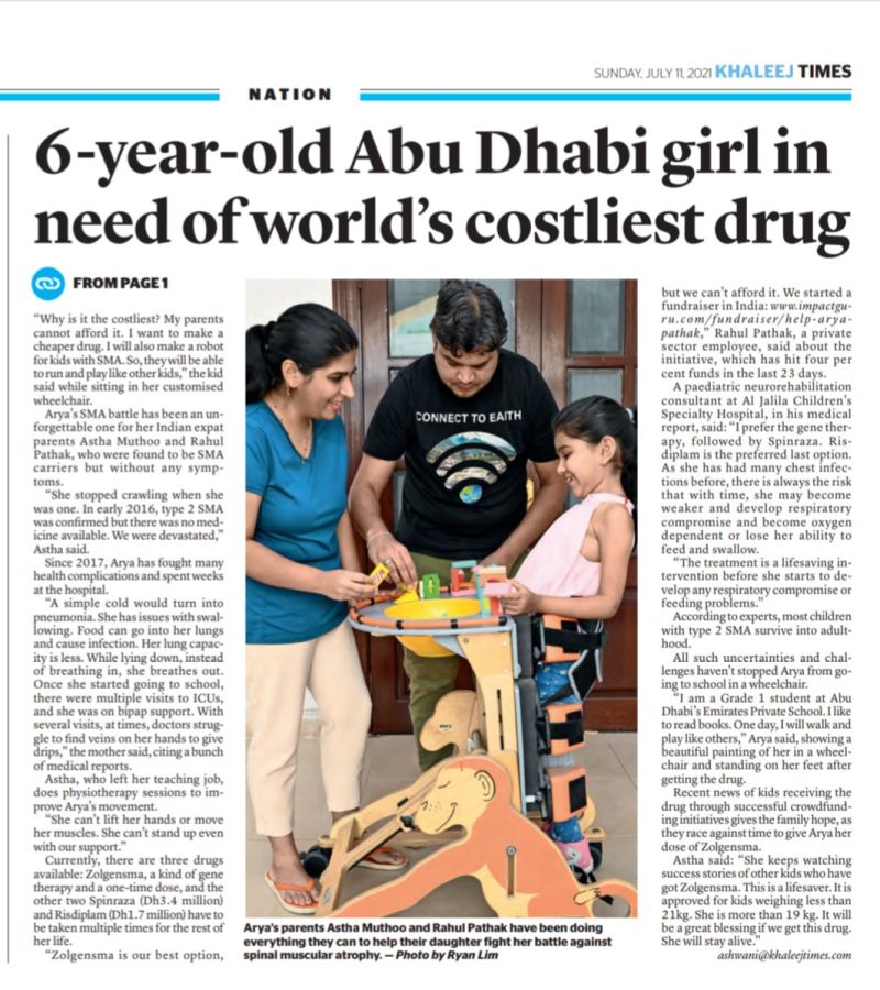 After multiple visits, the doctors suggested undergoing a genetic test to shed light on her troubles. It was revealed that Arya was battling the rare baby killer called SMA type2, Spinal Muscular Atrophy. SMA is a degenerative genetic condition that affects the motor neurons in her body.